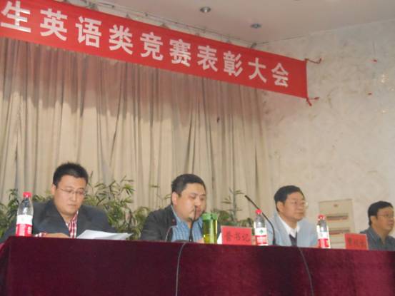 本次“全国大学生英语类竞赛表彰大会”由外语系教师宋亚军主持。外语系书记普昆首先发言,他代表承办英语类竞赛的组织者向在场的各位领导、老师以及参加表彰大会的各位同学认真介绍了我们所参加的各类英语竞赛的概况,并给大家展示了我校历届学生获得的各项荣誉,同时向获得这些荣誉的各位同学以及他们的指导老师表示祝贺,随后是对获得本年度英语类竞赛的获奖学生和指导老师进行颁奖。本次英语类竞赛表彰大会共颁发三类英语竞赛奖项,它们分别是全国大学生英语竞赛、全国高职高专英语写作大赛、全国高职高专英语口语大赛。颁奖结束后,学生代表进行发言。最后,由贾校长做此次大会的总结,他向获奖同学及指导教师祝贺的同时也向在座的给位同学表达了殷切的希望,此次表彰大会在隆重、热烈、简朴的气氛中圆满结束。