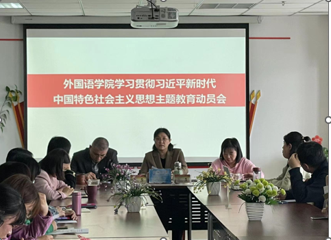 4月27日下午,外国语学院召开学习贯彻习近平新时代中国特色社会主义思想主题教育动员会,深入学习习近平总书记在学习贯彻习近平新时代中国特色社会主义思想主题教育工作会上重要讲话精神。外国语学院全体教职工参加会议。会议由外国语学院党委书记冯宜丽主持。
