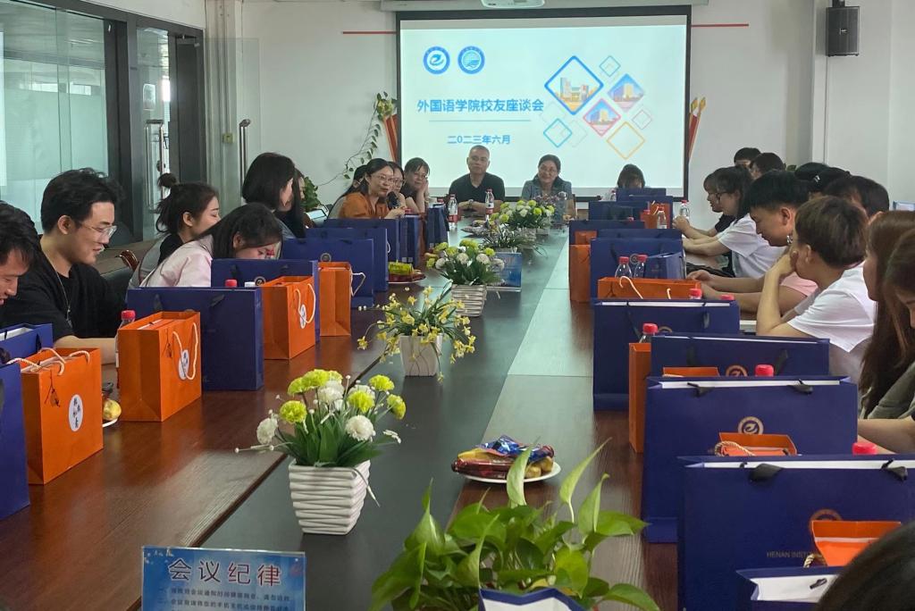 校友座谈会在学院1012会议室举行。外国语学院党委书记冯宜丽、副书记靳静波、副院长王旭东、商务英语教研室教师代表与2020、2021、2022届校友代表亲切交流。