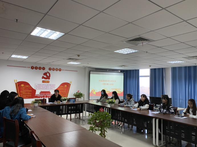 为及时了解入党申请人的思想动态,进一步引导入党申请人坚定理想信念,端正入党动机,明确努力方向,外国语学院学生党支部于11月10日下午在创新楼召开入党申请人座谈会。