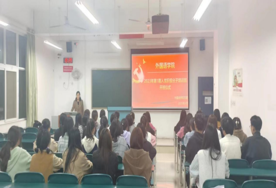 为进一步提高学生对党的认识,掌握党的政治理论知识,为党组织发展提供新鲜血液,2023年4月11日晚,外国语学院2023年第一期入党积极分子培训班开班仪式在教七251举行。开班仪式由外国语学院党委书记冯宜丽老师主持。