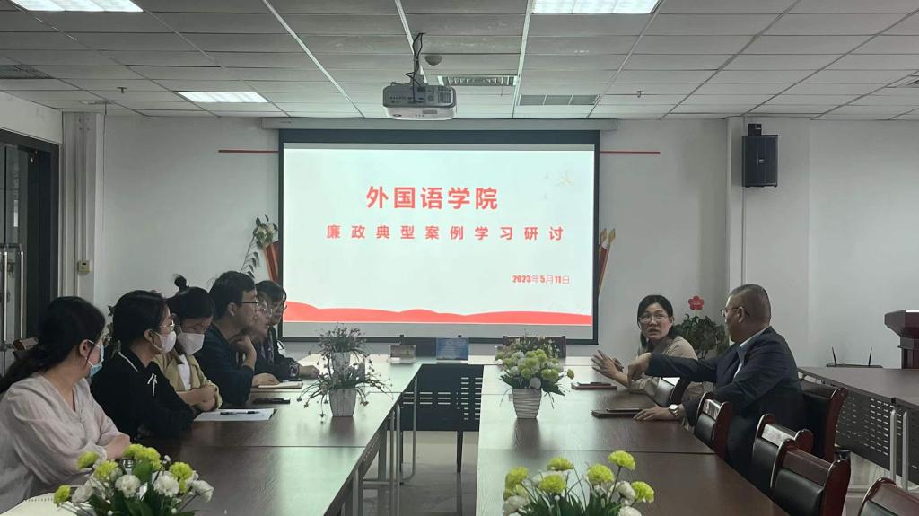 为深刻领会习近平新时代中国特色社会主义思想,贯彻党的二十大精神,进一步加强党风廉政建设,提高党员干部廉洁自律意识,持之以恒推进全面从严治党,营造风清气正育人环境,2023年5月11日外国语学院召开廉政典型案例学习会,会议由院党委书记冯宜丽主持,院党政班子成员、支部书记出席会议。