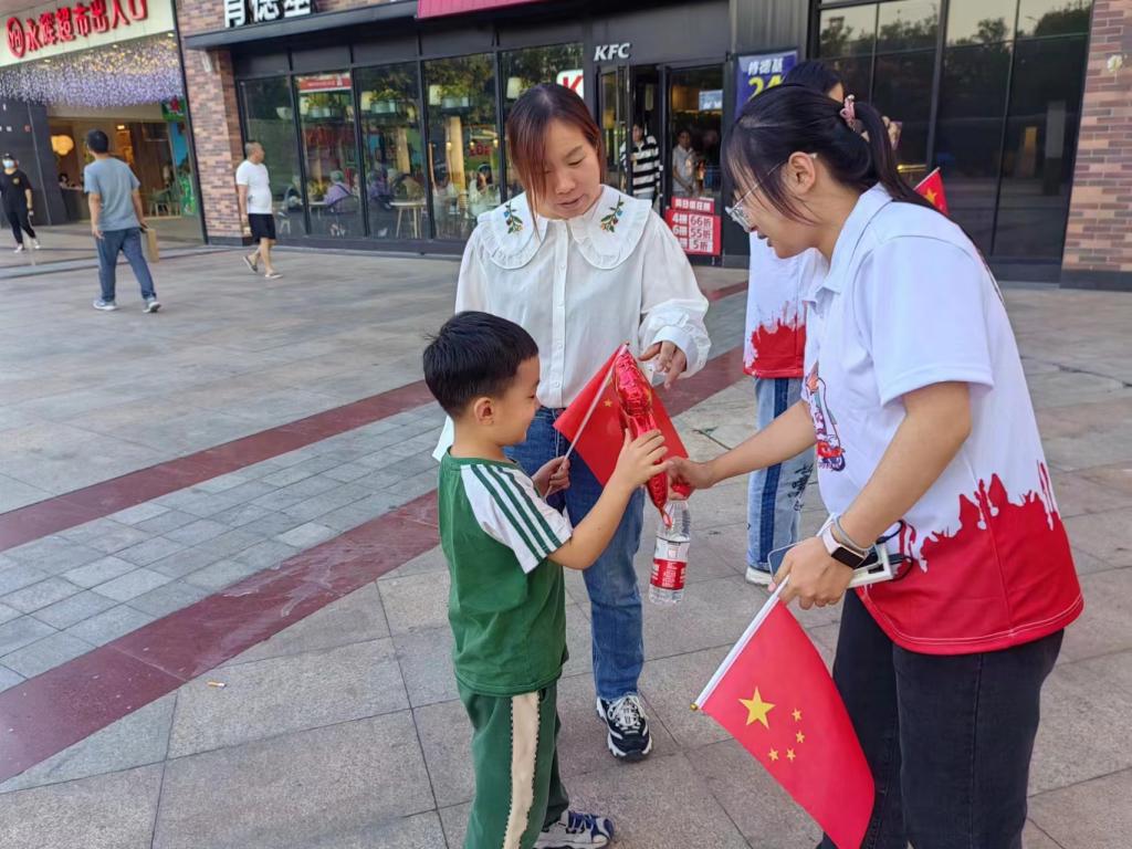 活动中,学生党员分组前往定国湖、万达广场、宝龙广场周边区域,随机采访路人,并为小朋友们分发书签、手摇小国旗和国庆头饰。在采访过程中,路人纷纷表示,过去他们经历了疫情三年的低谷,看到了国外战争的残酷,如今他们所处的中国,百姓安居乐业、生活幸福安康,这鲜明的对比无不印证祖国的繁荣昌盛。活动在学生党员们的小合唱《如愿》中落下帷幕,希望未来的中国将继续屹立在世界前列,社会发展稳步向前,早日实现中华民族伟大复兴的中国梦。