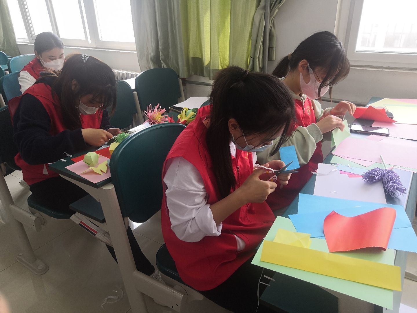 在活动开始前,活动负责人组织志愿者集合,向志愿者们介绍了活动内容、目的以及注意事项后,带领他们前往活动地点,随后志愿者们按照安排展开活动。活动负责人将志愿者分为三组,第一组志愿者负责制作纸花,第二组志愿者负责设计展板,第三组志愿者负责在活动过程中进行拍照记录。在活动开展过程中,负责人号召志愿者们充分发挥想象力和创造力进行手工折花制作,一张张方方正正的卡纸渐渐变成了形状各异的纸花。志愿者们把自己对英雄的思念寄托在一个个纸花上,愿生命之花永远绽放。
