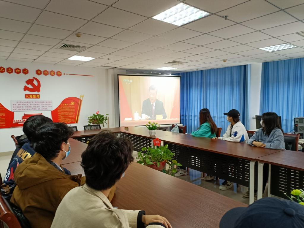 大会上,习近平总书记发表了重要讲话,表达了对青年的赞美,“在5000多年源远流长的文明历史中,中华民族始终有着‘自古英雄出少年’的传统,始终有着‘长江后浪推前浪’的情怀,始终有着‘少年强则国强,少年进步则国进步’的信念,始终有着‘希望寄托在你们身上’的期待。千百年来,青春的力量,青春的涌动,青春的创造,始终是推动中华民族勇毅前行、屹立于世界民族之林的磅礴力量!”通过观看学习,全体师生与习近平总书记一起重温了共青团艰苦卓绝的奋斗历程,再次学习了共青团员为中华民族谋独立、谋幸福而不畏艰难险阻、勇往直前的大无畏精神和高尚品格。学生代表李怡霖表示,中国共产主义青年团是广大青年在实践中学习中国特色社会主义和共产主义的学校,是中国共产党的助手和后备军。我们要铭记历史,不忘使命,敢于斗争,拼搏向上,坚定实现共产主义的理想和信念,为早日实现中华民族的伟大复兴贡献自己的一份力量。学生代表张政表示,历史,总是在一些特殊节点给人以深刻的启示和奋进的力量。100年前,我们党亲手缔造了共青团,由此揭开党的青年运动新篇章,也开启了共青团紧跟党为实现民族复兴不懈奋斗的青春征程。现在的中国共产主义青年团已然成为引领中国青年听党话、跟党走,推动中国青年运动蓬勃向前的中坚力量。