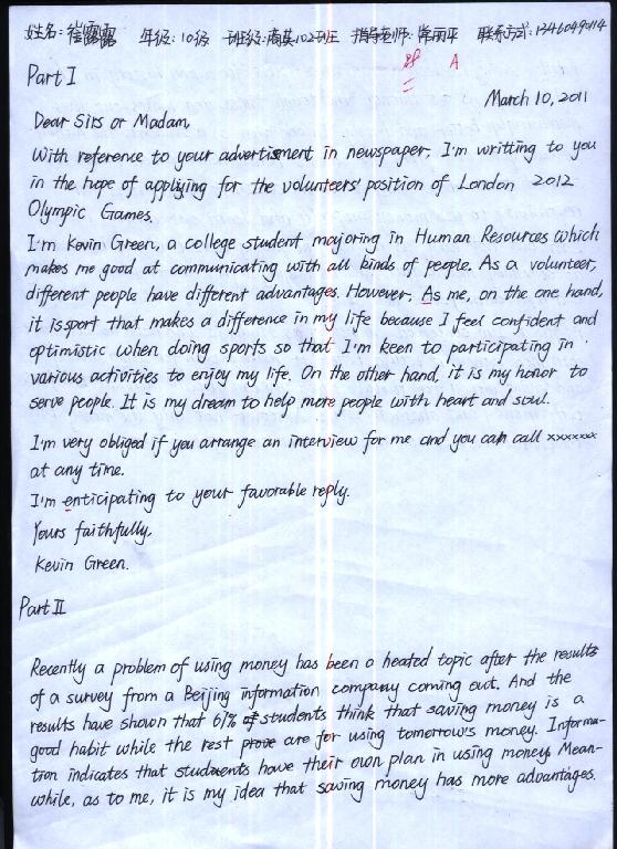 2012年3月10日,第三届全国高职高专英语写作大赛初赛在我校隆重举行,本次比赛共分两个级别:专业组和非专业组,参加学生人数五百余人,分别在老校区和新校区都设有考场。通过两个小时的角逐,本次初赛共决出特等奖3名、一等奖11名、二等奖19名和三等奖32名,其中获得特等奖的选手为机械系机制115班李海凤、计科系计信管101班徐博杰和外语系商英102班崔露露,以上三名特等奖选手将代表我们学校参加4月7日在河南郑州举办的第三届全国高职高专英语写作大赛河南赛区的决赛,希望他们继续努力,同时也预祝他们在指导教师的指导下获得更加优异的成绩。