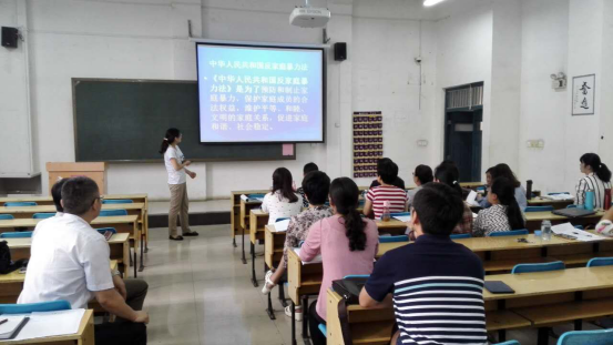 5月11日下午4:00,外语系分工会主席冯宜丽老师主持了“反家庭暴力法”学习宣传活动。此次活动对提高我系教职工反家暴意识,维护家庭团结、夫妻和睦等具有重要的积极作用。