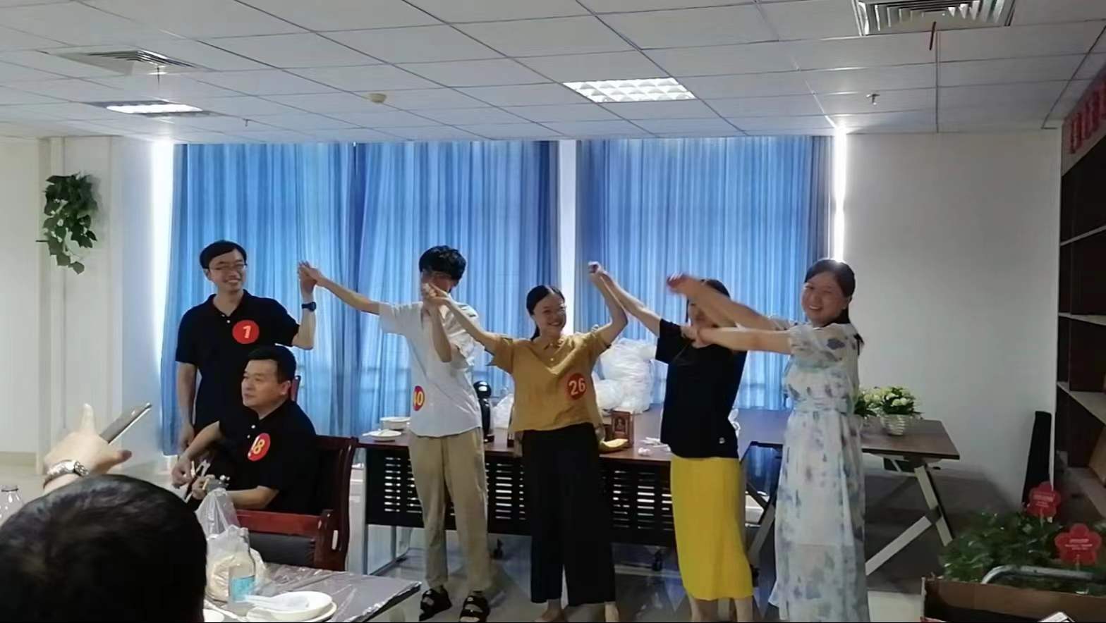 在大家品鉴之际,还开展“数7”、“号码牌”、“成语接龙”的小游戏,并且输了游戏的教师给大家进行才艺表演。整个现场人头攒动,热闹欢乐的气氛弥漫整个会议室。此次教职工厨艺展示活动,不但让教师们品尝到多样化的可口美食,也进一步丰富了我院教职工的文化生活,赢得了教职工们的广泛好评。