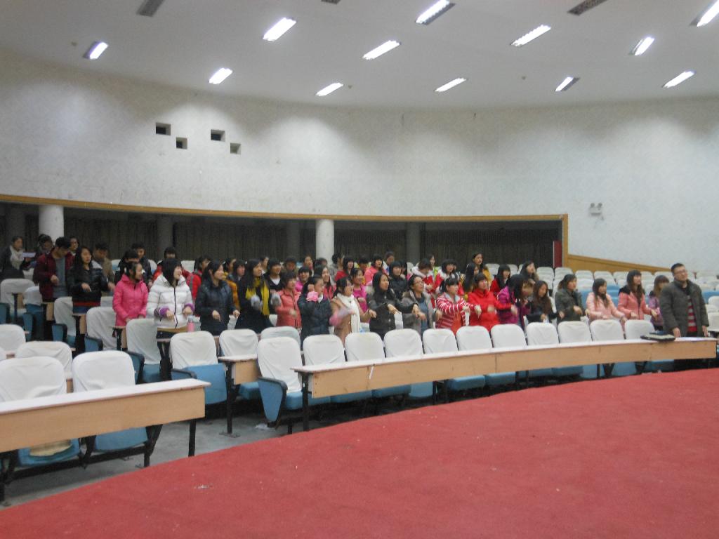 本次活动分为四个环节,活动开场由Sixto教同学们唱“Im here”,充分调动了同学们的积极性。第二环节由各队队长带领队员就“shopping online”自由讨论发言,让同学们自由表达自己的观点。第三环节是游戏,各队队长利用自己的肢体语言传递所看到的信息,由最后一名同学猜测并给出答案,同学们动作滑稽形象,全场气氛浓烈。其后宋亚军老师针对本次活动作了简单点评,最后,全体学生演唱“Im here”和“When you work”,英语角在欢快的气氛中圆满结束。