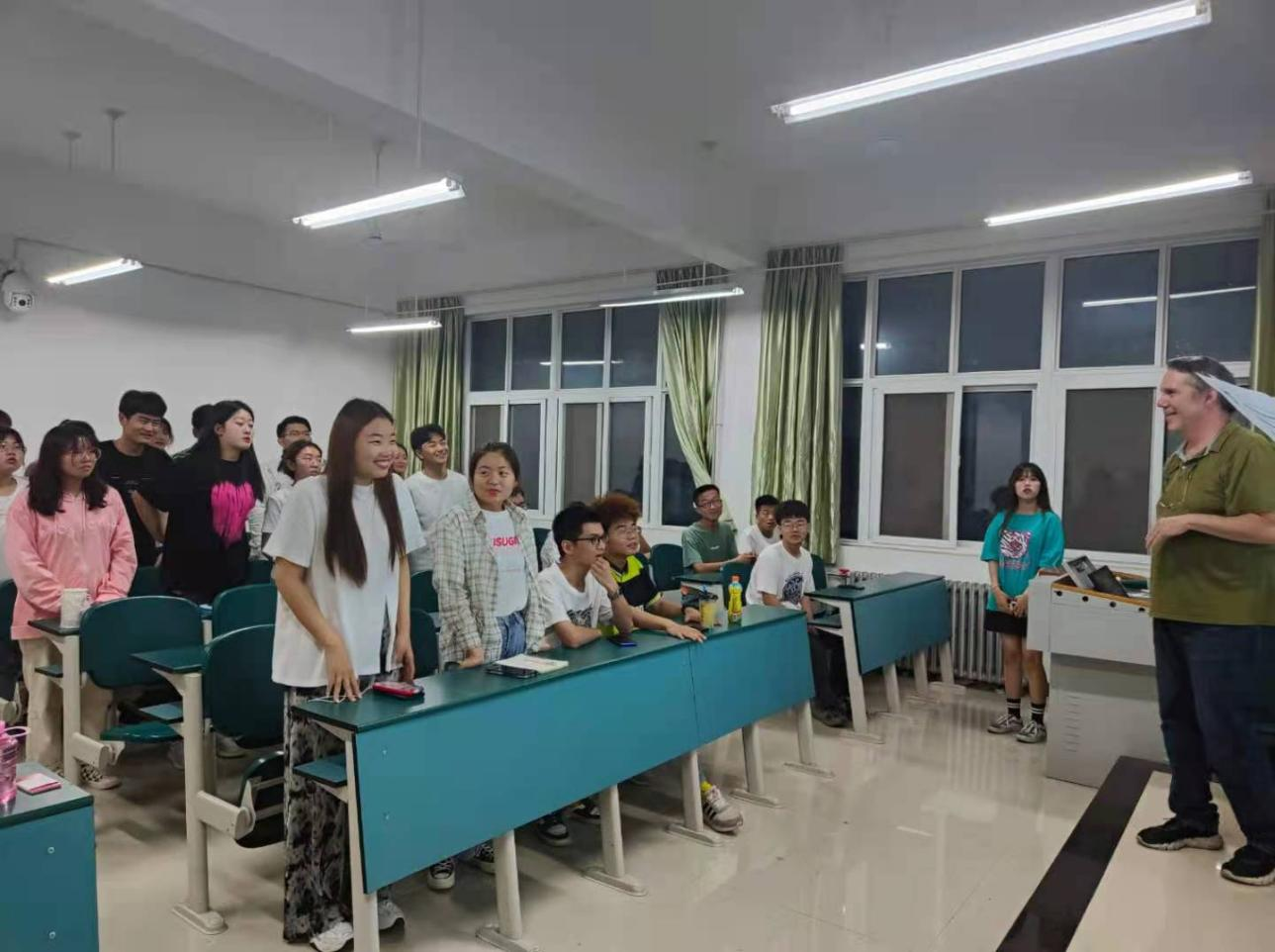 活动伊始,主持人向大家陈述了本次活动的流程。随后,热身游戏---“此呼彼应”缓解了同学们的紧张情绪;紧接着学生们和外教分别进行了自我介绍,增强了彼此间的了解。此外,各小组对所抽取的话题展开了热烈的讨论;同学们通过单词和句子接龙的游戏,在轻松的氛围中锻炼了自己的英语听说能力。活动最后,外教为同学们表演了一首东北歌曲,现场气氛轻松欢乐。