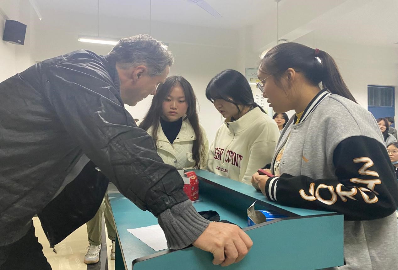首先,活动由一个热身小游戏--“小心踩雷”拉开序幕;紧接着活动进入到了单词游戏,同学们积极参与,踊跃抢答;在“传接英文句子”环节,同学们相互配合,顺利完成了任务。通过此次活动,同学们在娱乐中潜移默化地提升了自己的英语听、说、读、写能力。最后,以外教老师分享自己的来华经历结束本次活动。