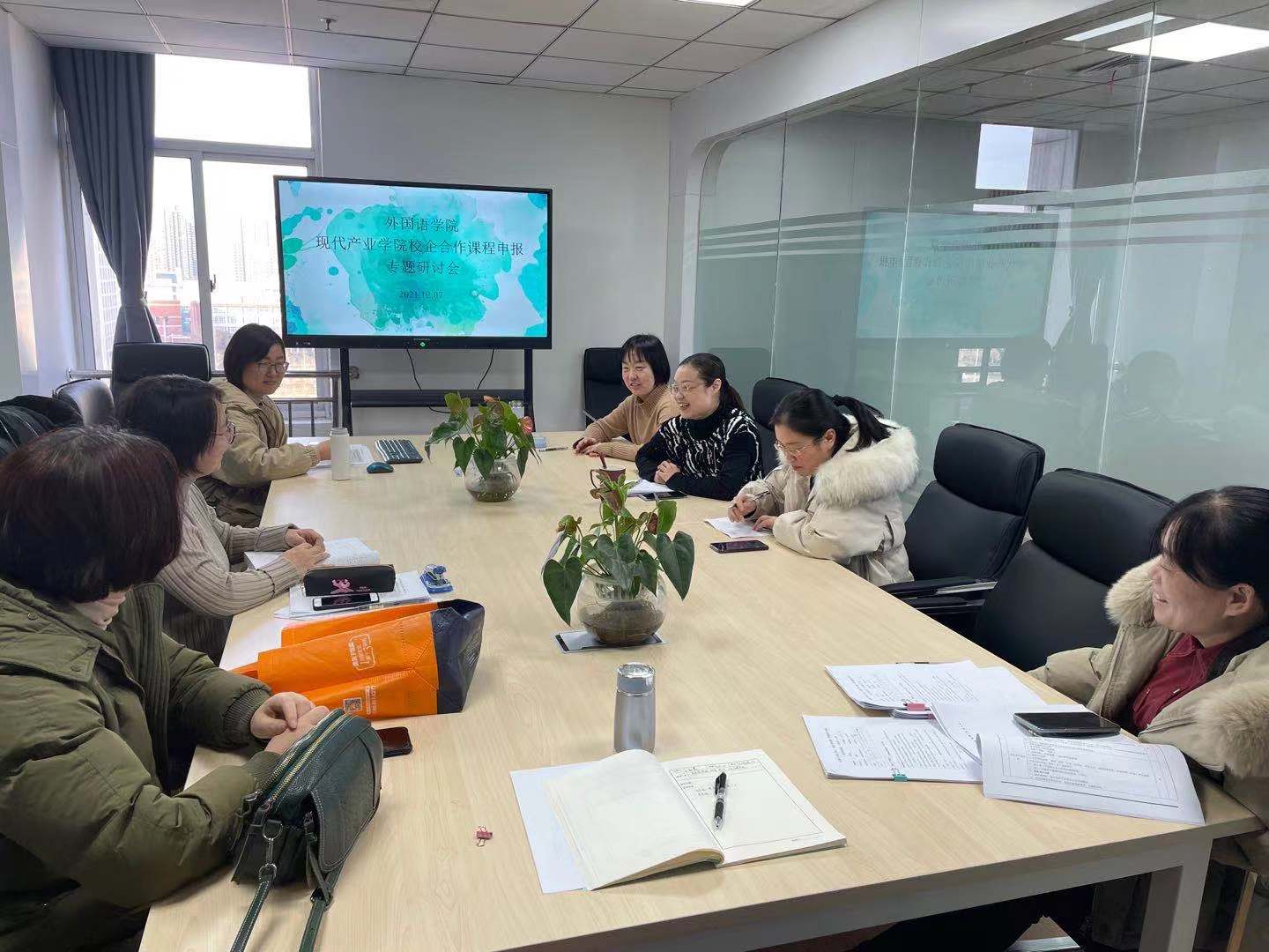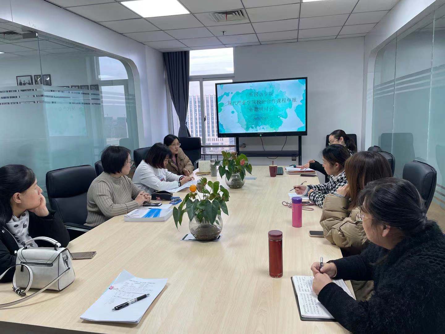 会议由外国语学院副院长冯宜丽主持。首先冯院长详细传达了学校关于现代产业学院校企合作课程的立项建设工作的精神,鼓励有企业实践经历的老师们积极参与申报校企合作课程,进一步推进语言服务现代产业学院的校企合作课程的建设和实施。商务英语教研室主任韩慧详细梳理了学院校企合作的前期建设基础和商务英语专业课程的相关情况。老师们结合自己的课程教学、企业实践经历以及研究方向和兴趣积极讨论、相互交流,为校企合作课程申报出谋划策,并形成了初步的校内课程合作团队。