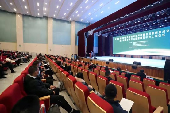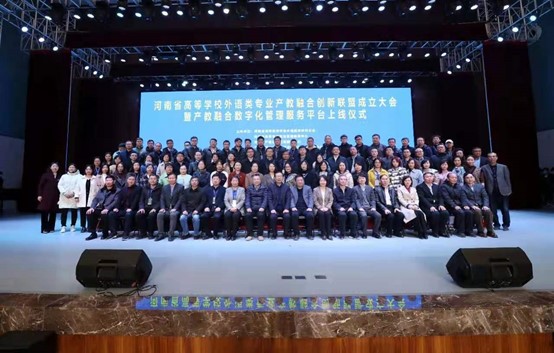 2021年12月4日我院院长普昆携商务英语教研室主任韩慧前往黄河科技学院参加河南省普通高等学校外语类专业产教融合创新联盟成立大会暨产教融合数字化管理服务平台上线仪式。河南省教育厅高教处处长张水潮、河南省高教学会秘书长吴长运、河南省高校外语教学指导委员会主任委员高继海、黄河科技学院、郑州大学、河南城建学院、河南工业大学、安阳工学、河南牧业经济学院等八十多位河南省部分高校外语学院的主要负责同志、部分用人单位的领导或代表出席。
