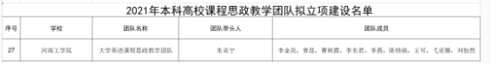 近日,河南省教育厅公布了河南省本科高校课程思政项目拟立项建设名单。外国语学院“大学英语课程思政教学团队”获批省级课程思政教学团队。