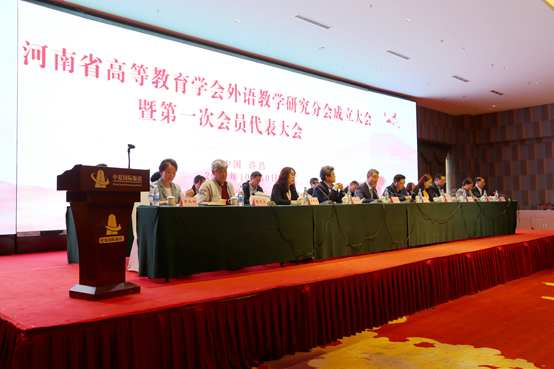河南省教育厅高教处处长张水潮,河南省高等教育学会秘书长吴长运,北京语言大学副校长、教育部英语专业教指委委员张宝钧教授,中国高等教育学会外语教学研究分会秘书长、北京外国语大学杨鲁新教授,教育部英语专业教指委秘书长、湖南师范大学外国语学院院长曾艳钰教授,河南省高等教育学会外语教学研究分会顾问、河南大学张克定教授,郑州升达经贸管理学院校长郭爱先教授,许昌学院院长岳修峰、副院长黄怡俐等出席会议。来自全省本专科院校的110余名代表及我校外国语学院负责人、教师代表参加会议。