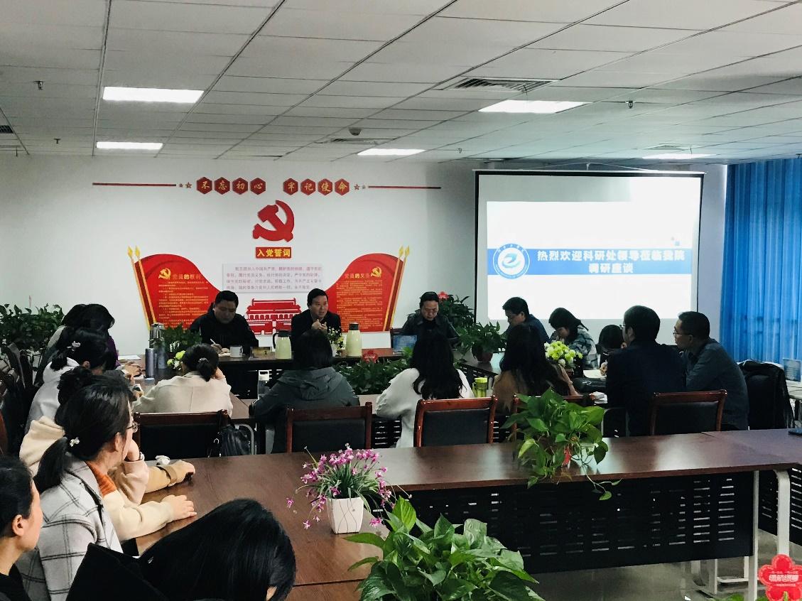 2021年4月8日下午,科研处处长杨占尧教授、副处长杨婕教授、综合管理科公永建科长一行到外国语学院进行调研交流。外国语学院全体教师出席了调研交流会,会议由外国语学院院长普昆教授主持。