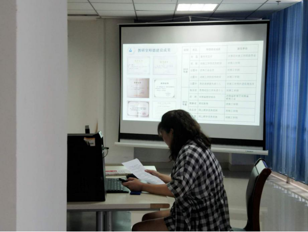 按照评选要求,我院三位教研室主任首先进行了情况汇报。之后评选组实地查看了各基层教学组织活动地点和活动组织的相关材料,并与基层教学组织负责人和一线教师进行了经验交流。校评选组专家对我院三个教研室的工作表示高度认可,并围绕规章制度建设、教学组织、专业建设、课程教材建设、教学研究与改革、教师教学发展、条件保障等方面逐一进行了点评,最后就如何开展活动、完善材料等提出了具体可行的建议。