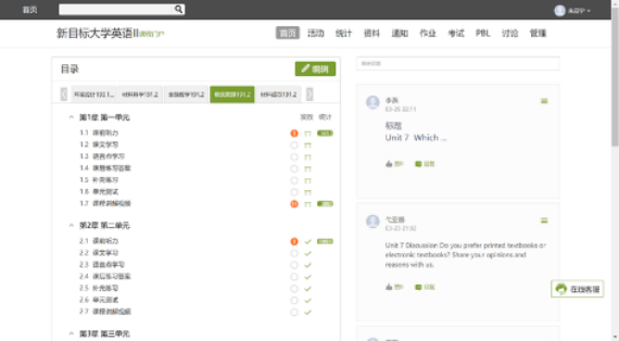 超星学习通章节内容的基础上又增加了教学课件、教案、测试、课程思政视频、时政英语新闻、教学录像视频等线上资源,并且以任务点方式分散到各单元教学模块中,方便学生自主学习。