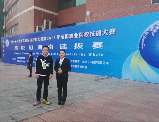 第十届河南省高职院校技能大赛暨2017年全国职业院校英语口语大赛(河南选拔赛)于2017年3月31日在商丘职业技术学院隆重举行。本次大赛设公共英语组和英语专业组两个组别,共有来自全省42所高职院校的99名选手参加此项赛事。我系2015级应用英语专业董顺顺同学参加英语专业组比赛。董顺顺同学发音标准,思维敏捷,观点独到,最终董顺顺同学荣获了专业组一等奖,这也是外语系在该项赛事中首次获得河南省一等奖。