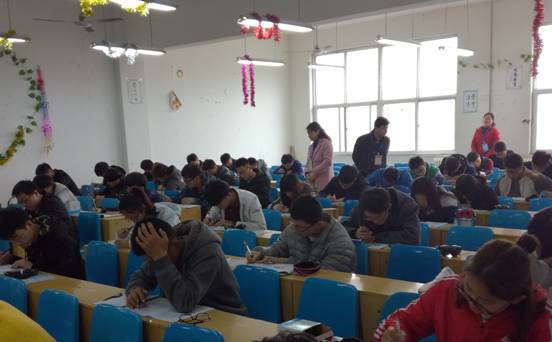 为严肃考风考纪,保障公平诚信考试,使全国大学生英语竞赛考试各环节顺利进行,2017年4月9日上午,外语系书记张红兵和副主任冯宜丽等部门负责人深入全国大学生英语竞赛初赛考试现场进行巡视检查。