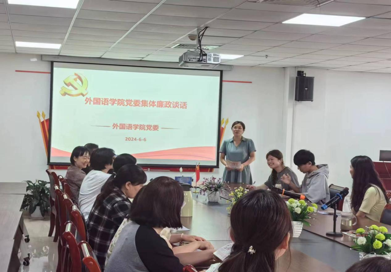 为进一步加强党员干部的廉洁自律意识,推动党风廉政建设和反腐败斗争的深入开展,外国语学院党委于近日召开了集体廉政谈话。6月6日,外国语学院党委在创新楼1012室展开集中廉政谈话,会议由院党委书记冯宜丽主持。