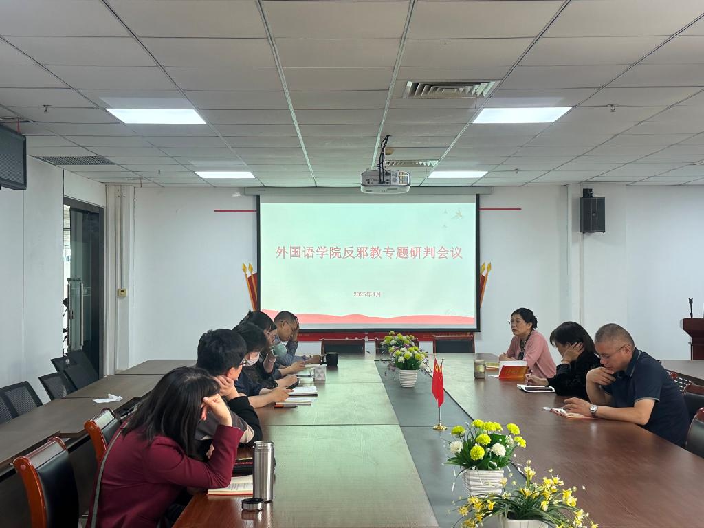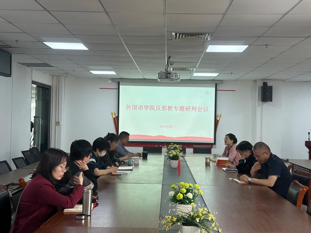 为深入贯彻落实党中央关于防范和抵御邪教渗透的决策部署,筑牢意识形态安全防线,4月10日,外国语学院党委召开反邪教工作分析研判会,全面分析当前反邪教工作形势,研究部署学院反邪教宣传教育长效机制。外国语学院党委书记冯宜丽主持会议,外国语学院党委委员会成员、各党支部书记、辅导员参会。