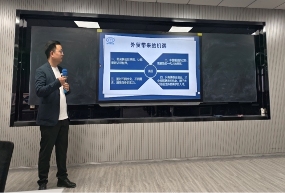 2025年4月24日,由外国语学院主办、英语协会协办的外贸专题讲座“外贸的逆袭——从校园到国际舞台”在创新楼812顺利举行。新乡市喜阳阳筛分机械制造有限公司总经理李阳作为主讲嘉宾,为在场学生带来了一场兼具实用性与启发性的外贸行业分享。