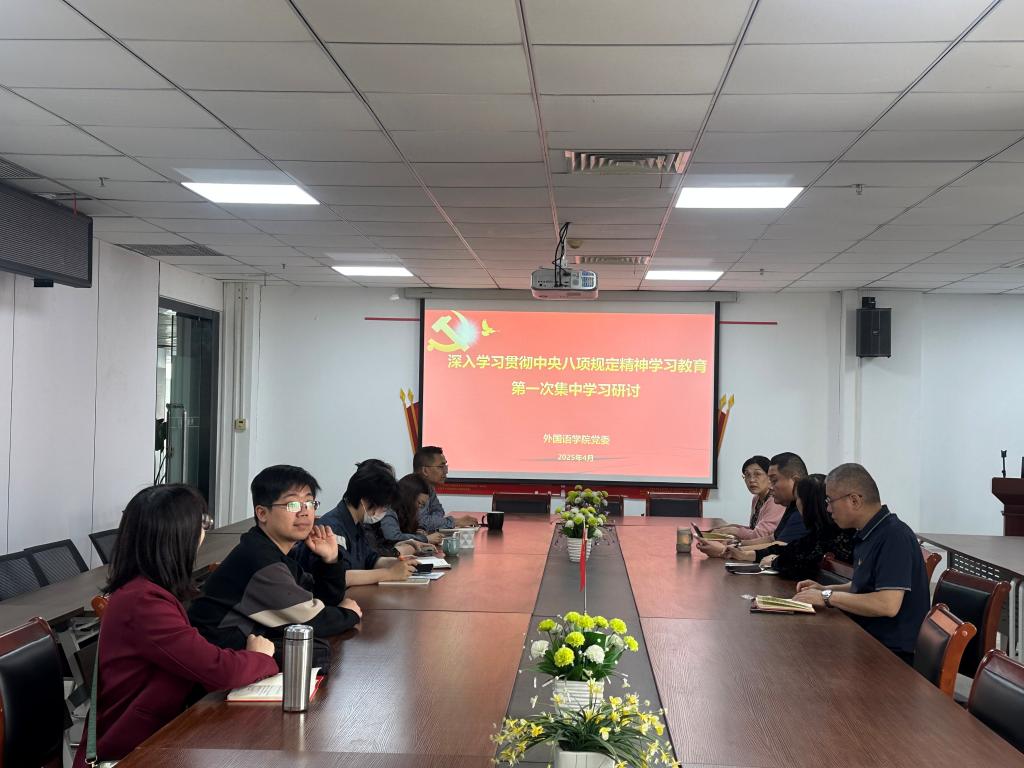 会议伊始,外国语学院党委书记冯宜丽领学了《中共中央政治局贯彻落实中央八项规定实施细则》,强调中央八项规定精神是“全面从严治党的金色名片”,要求全体党员干部以高度的政治自觉,将中央八项规定精神内化于心、外化于行。她指出:“学院必须从思想根源上筑牢防线,紧盯‘四风’问题新动向,在公务接待、经费使用、学术活动等关键环节严把纪律关。”随后,与会党员同志紧扣学习主题,分别结合个人工作、生活和思想实际,逐一交流了学习心得和工作改进举措。