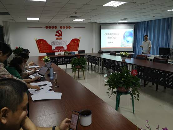 本学期,我院共有《综合商务英语(1)》、《商务英语视听说(1)》、《商务英语口语(1)》、《商务英语阅读》、《英语基础写作》等6门课程为本科新开课,涉及商务英语本科专业2019级和2020级。课程承担教师首先对各自的教学理念、授课思路、课堂设计等内容进行汇报,之后进行课程试讲。外国语学院本科教学新课程开课试讲工作小组对各位老师的汇报和试讲情况进行了客观评价。