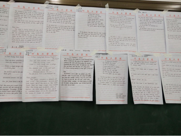 河南工学院英语协会于2019年11月28日下午四点钟,在工科组团422教室举行第二届英语书法比赛总决赛。英语书法比赛是由共青团河南工学院委员会主办,河南工学院英语协会承办。它旨在引导当代大学生树立正确的人生观,价值观,提高同学们的英语书法水平和写作能力,并给同学们提供一个展现自我、提升自我的机会和舞台。