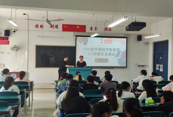 9月10日早上,2023级商务英语231班和232班在班主任的带领下,分别召开了新生见面会。同学们相继进行自我介绍,增进相互了解。班主任还为新生们详细解读了学校的规章制度、教育教学理念、课程设置、学术科研等方面的情况,帮助新生们更快地融入大学生活。
