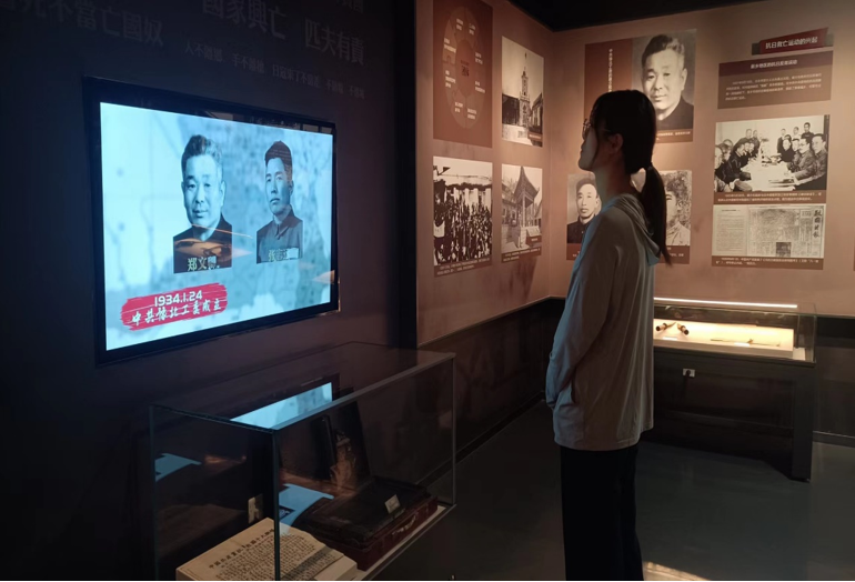 图为志愿者参观郭兴事迹展览馆
