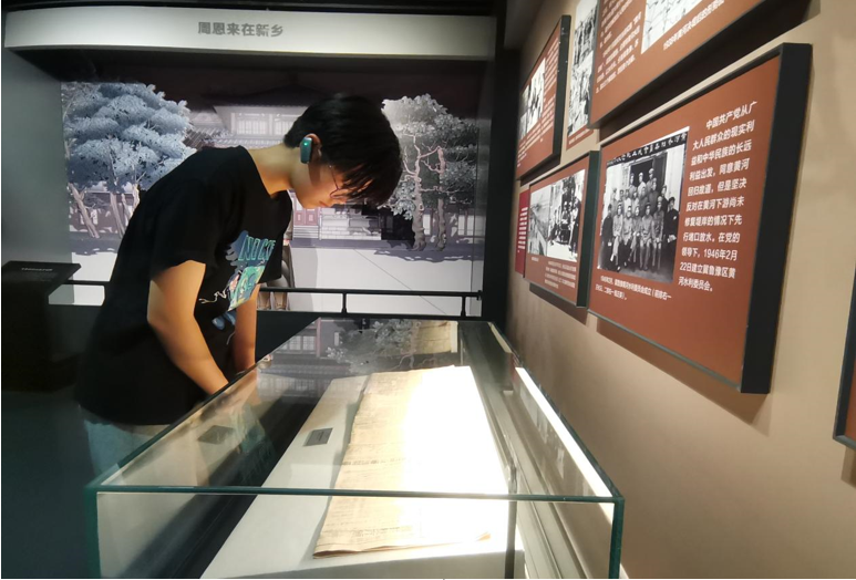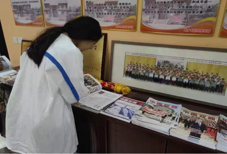图为志愿者参观郭亮村展览馆