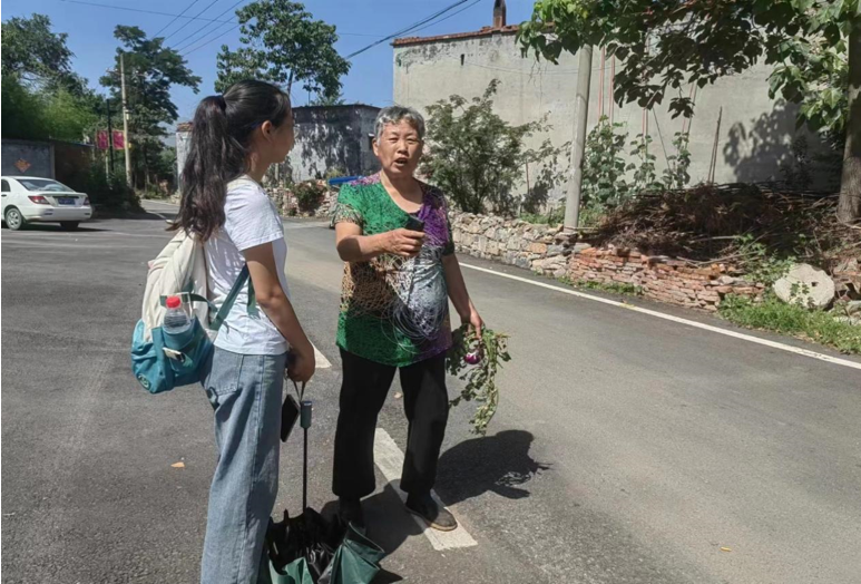 图为志愿者同当地村民交谈