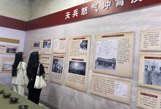 陈赓抗战指挥部旧址门口,挂着“弘扬老区精神 传承红色基因示范基地”牌匾。走进院内,只见墙上镌刻着“沿着革命前辈的足迹继续前行,把红色江山世世代代传下去”标语。该院落系“四合院”,现有“起居室”“指挥部”“陈列室”和“陈赓日记室”等展室。听着解说员的讲解,同学们又回到了当年的烽火岁月……一个个鲜活的革命故事、一张张弥足珍贵的历史照片、一件件斑驳的抗战实物,向人们无声地诉说着、传递着抗日战争时期无数革命先烈、仁人志士,前赴后继、浴血奋战的峥嵘岁月。