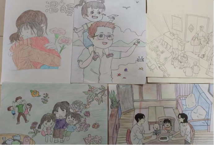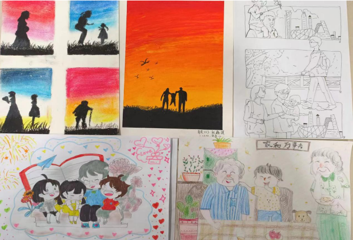 活动期间,同学们积极踊跃地参与,通过线上互动的方式分享自己的原创画作,讲述自己的成长故事,重温曾经的幸福时光。脑海中的画面可能已经褪色,但亲情依旧温暖人心;曾经的记忆可能并不那么完整,但过往的点滴仍留存在我们内心深处。每一幅画不仅是一个故事,更是绘画人心中情感的载体。同学们通过丰富的想象力和创作力,将爱化作行动,将不易表达的话语用画笔传达出来。一幅幅充满温暖的作品在他们的笔下慢慢浮现,一张张多彩的画面定格了那些令人怀念的温馨瞬间。