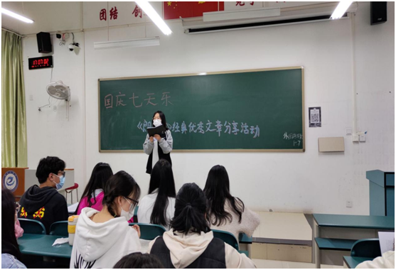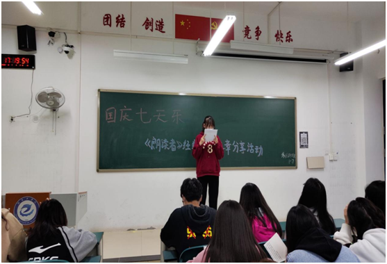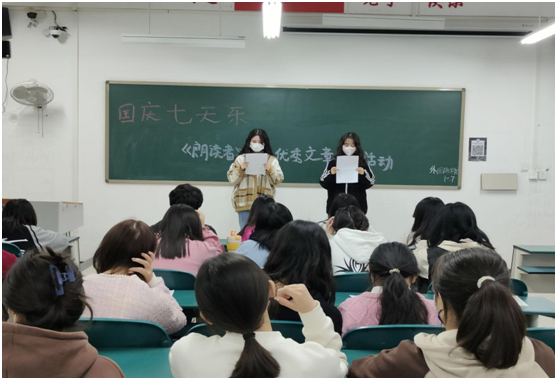为了营造良好的文化氛围,加强同学们的学习积极性,展现文字的魅力,外国语学院于10月7日在教七#213开展国庆七天乐——《朗读者》经典文章分享活动。