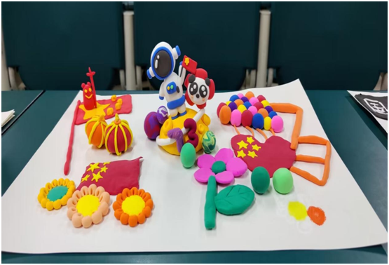 本次彩泥活动共有25名同学参加,同学们在活动过程中充分激发设计创作能力,展现出各具特色的想象力。在一个半小时的活动过程中,同学们集思广益,将飘扬的五星红旗、帅气的宇航员、可爱的大熊猫展现得活灵活现。每一份作品都展现出同学们对祖国清澈、诚挚的爱。(外国语学院团总支 文/图)