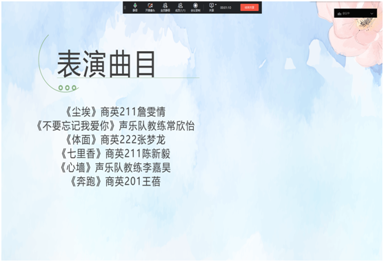 活动过程中,我院文体部负责人邀请声乐队倾情献唱,唱出欢迎,唱出鼓励,唱出热情。新生们也即兴展示了个人才艺,分享了兴趣爱好、家乡特色和各地美食。院学生会主席团还就新生普遍关心关注的热点话题进行了解答。线上气氛融洽、热烈,在娱乐的同时也促进了情绪的释放与情感的传递。