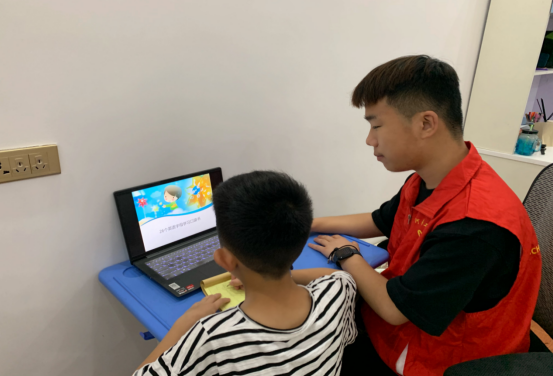 图为志愿者一对一英语教学