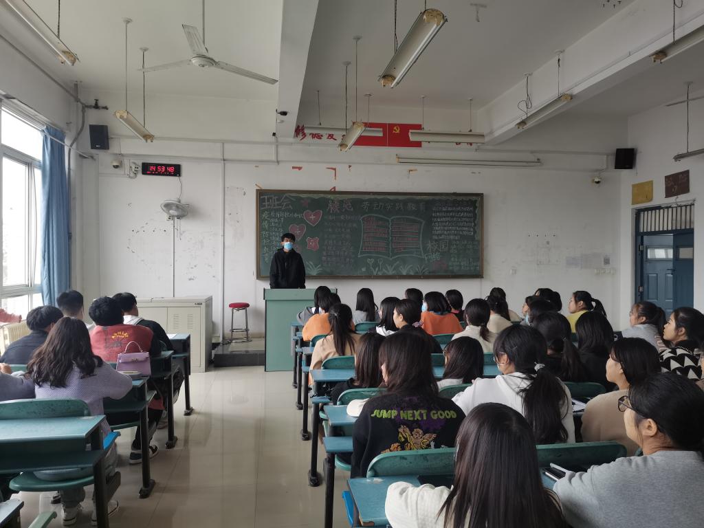 会上,两位老师先是强调了学校疫情防控的方案,并督促学生每日坚持零报告、日报告制度,坚持每天下午3点前完成钉钉打卡,一旦出现发热及时到校医院就诊,并按照规定程序上报。随后,通过展示诈骗实例的内容,教育学生要认识到“两个不”“五个一律”,即不存侥幸心理、不贪图小便宜,对方提到银行卡、中奖、电话转接公检法、陌生人发来的不明网络链接、要求转账汇款的一律要慎重。接着,班主任老师组织大家讨论对劳动实践的认识,宣传劳动精神、劳动模范人物,在全社会营造出爱劳动,劳动崇高的氛围,让同学们深刻体会到只有辛勤劳动才能创造美好希望和未来。最后,同学们共同学习了《大学生活指南》中有关河南工学院学生违纪处分管理办法的规章制度。