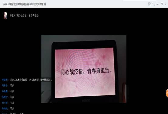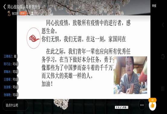 应用英语193班展开线上连麦的新颖方式吐露各自的见解,学习新思想,体悟坚守与奉献。让我们共同致敬疫情中所有的逆行者,感恩生命。