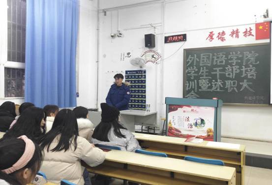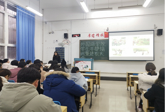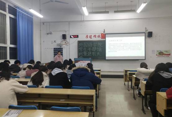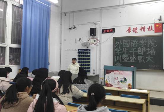 为了使学生干部更好地总结上半年的工作任务、了解工作差距,以在下学期更好地完成校、院布置的各项任务,提高学生干部个人综合素养,我院于2020年1月2日下午在C106召开了外国语学院学生干部培训暨年终述职大会。院学工办主任李佩珊及全体学生干部参加本次大会。