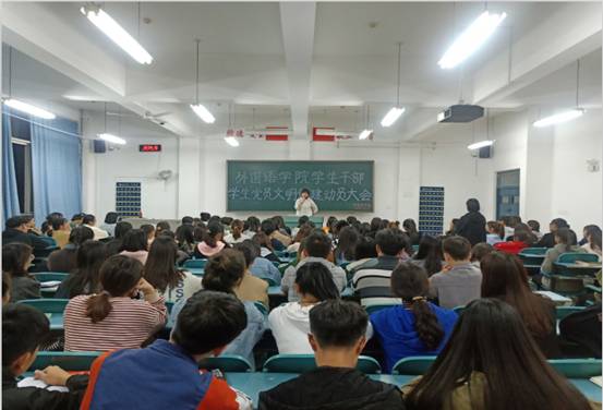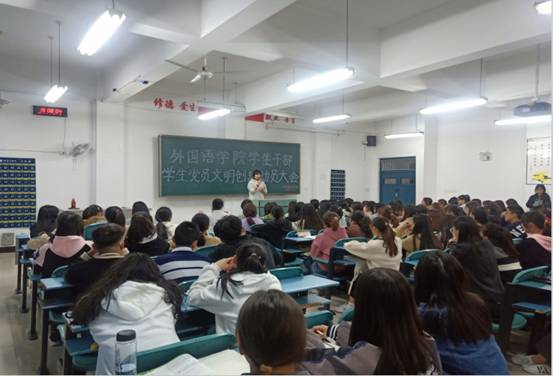 11月11日晚7点,外国语学院学生干部、学生党员创建文明校园工作动员大会在公教楼B201召开,院学工办主任李佩珊主持动员大会。