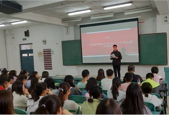 9月22日上午八点半,外国语学院2019级新生开学典礼暨入学教育大会在公教楼C208举行。外国语学院院长普昆、副院长冯宜丽、专业教研室主任韩慧、学工办主任李佩珊出席开学典礼。本次大会由2019级新生辅导员张婷主持。