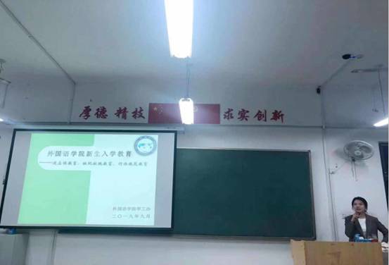 为帮助新生更好、更快地适应大学生活,鼓励新生做合格、优秀、文明的大学生,外国语学院于9月21日下午6点半在A104开展新生校纪校规暨文明行为教育。