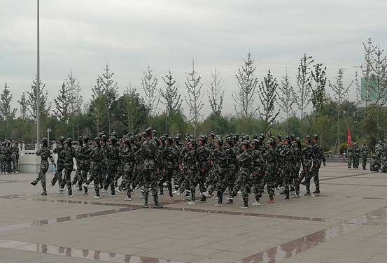 军训第八天,一连几天的阴雨,今天突然放晴,让人心情大好。小萌新们也都早已整装待发,标准的军姿已经站好。果然经过几天的辛苦训练,他们可真进步了不少,一个个眉眼间都透露着一股坚定。