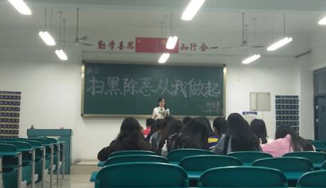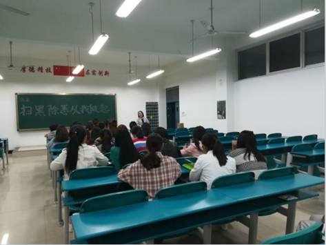 班会伊始,各班主任对中共中央《关于开展扫黑除恶专项斗争的通知》等相关政策法规及扫黑除恶专项斗争工作的重要意义进行讲解。通过对《通知》的学习,学生们对扫黑除恶的目标任务及重点打击的十一类黑恶势力犯罪有所了解。此外,班主任们还结合校园黑恶势力犯罪行为向学生们讲解“校园贷”的危害及套路,提醒同学们远离“校园贷”。最后,班主任深入浅出地讲解了什么是校园欺凌、怎样预防校园欺凌事件的发生、以及遭遇欺凌时应该采取什么样的措施进行应对等相关问题。