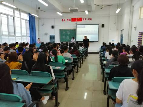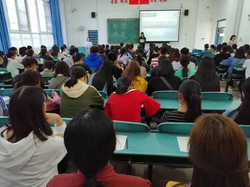 大会在齐唱国歌中拉开帷幕。在接下来的新生代表发言环节,181班的练淼熠同学表明了要自信满满地迎接新学期的决心。随后,172班的王培培同学代表在校生发言。她建议同学们要充分利用各种教学资源,合理规划自己的大学生活。接着,教师代表李东君老师从三个方面给同学们提出了宝贵建议。她指出要快速进行角色转换以适应大学生活,强化自主学习意识;要全方位发展,不仅要学会专业知识,也要提高综合能力;要提高解决问题的能力,抵御诱惑,合理规划学习。李老师还代表外语系全体教师承诺定能爱岗敬业,为人师表,做同学们的良师益友。在压轴环节,外语系主任普昆讲话。普主任首先代表外语系全体师生欢迎2018级新同学的到来。接着,普主任向大家介绍了外语系的历史和机构建设,并就校企合作的特点、优质的师资队伍和高水平的教学水平做出了重点阐述。