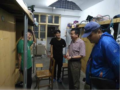 915日晚,外语系书记张红兵、主任普昆、辅导员李佩珊及18级班主任李卉深入新生宿舍,关切地询问新同学是否适应新的环境、对宿舍情况是否满意,并耐心解答了同学们的各种疑问。普主任对新生提出了殷切希望,希望他们能尽早适应大学生活,完成高中到大学生活习惯、学习习惯的转变。
